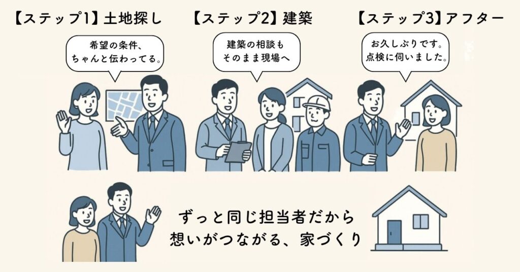 土地探しから建築、アフターサポートまで、ずっと一緒に