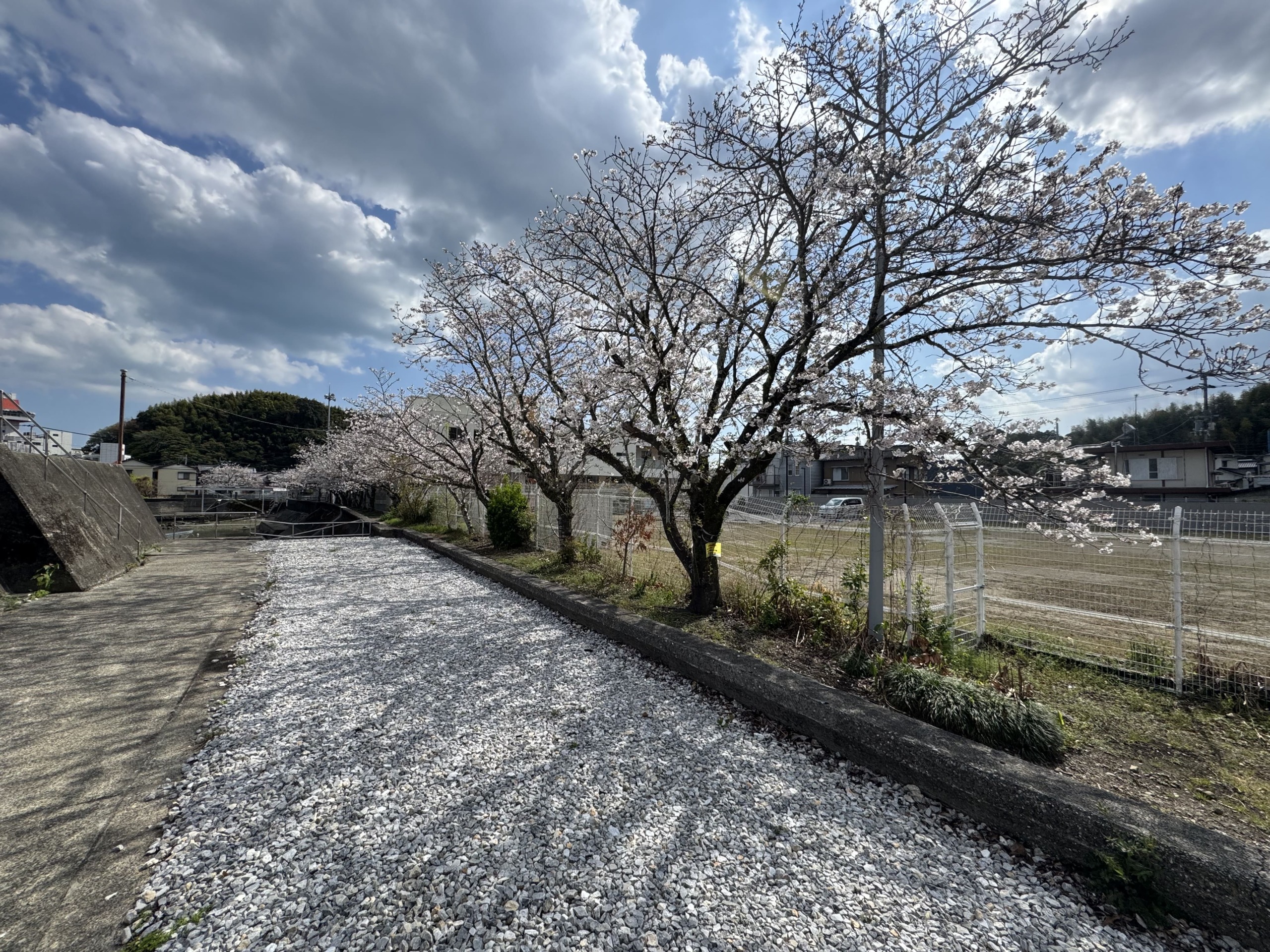 春は堤防沿いの桜並木、夏は花火も楽しめます。