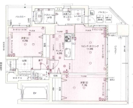 | 土地面積 | -㎡(約-坪) | 間取り | 15.2LDK、7.1洋、6.2洋 |