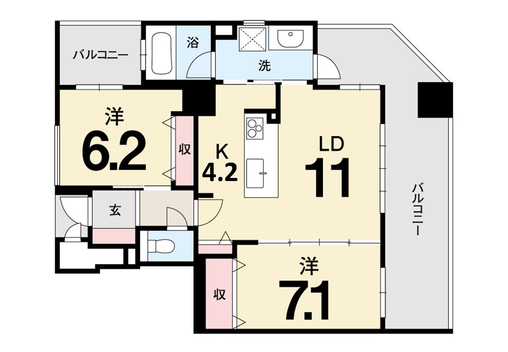 北東角部屋・2面バルコニーの開放的な住まい。