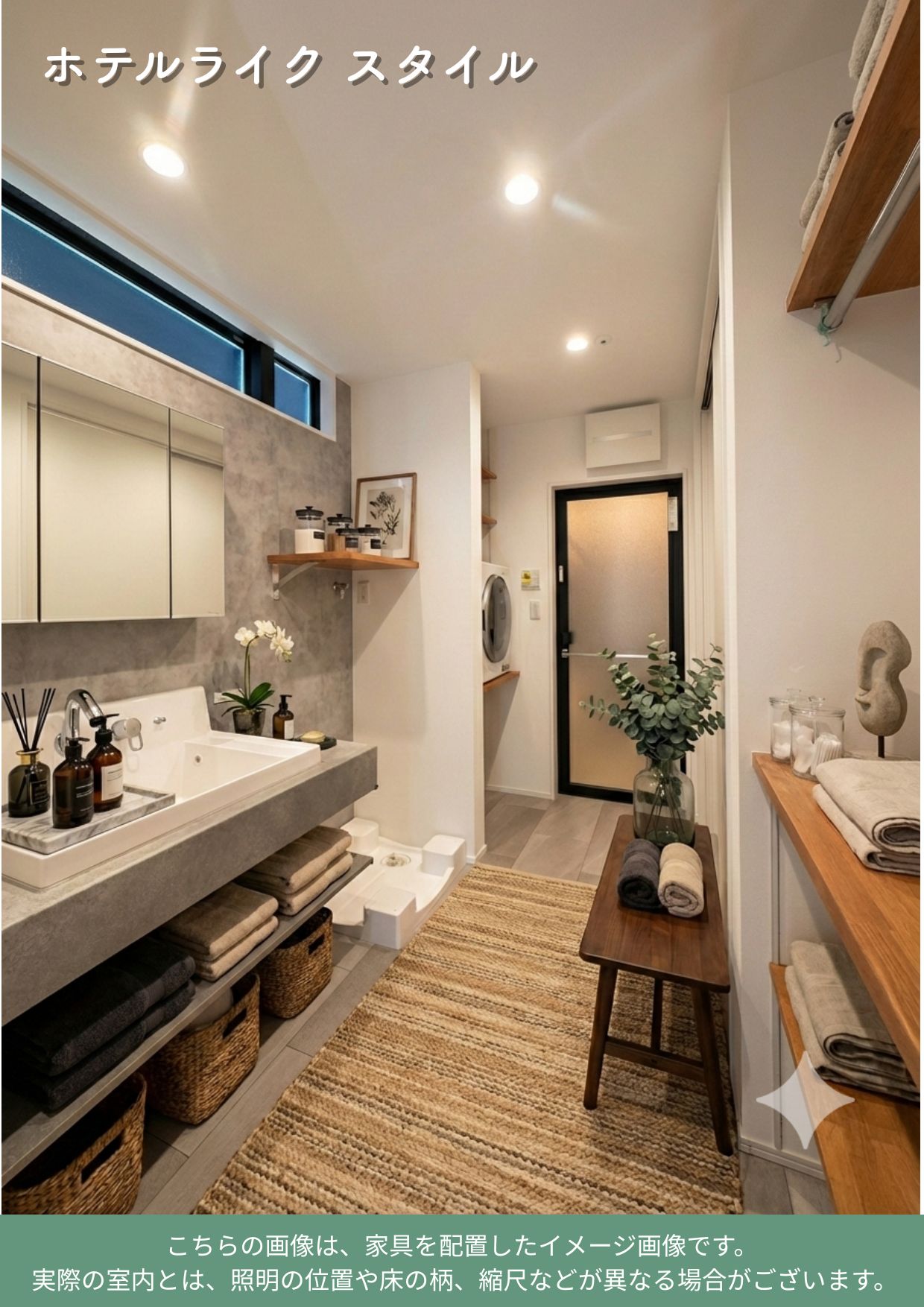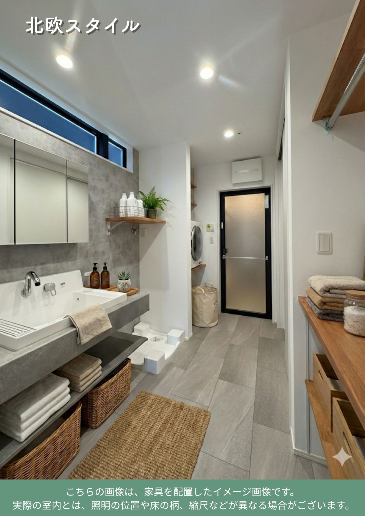 洗面室はゆとりある広さを確保し、