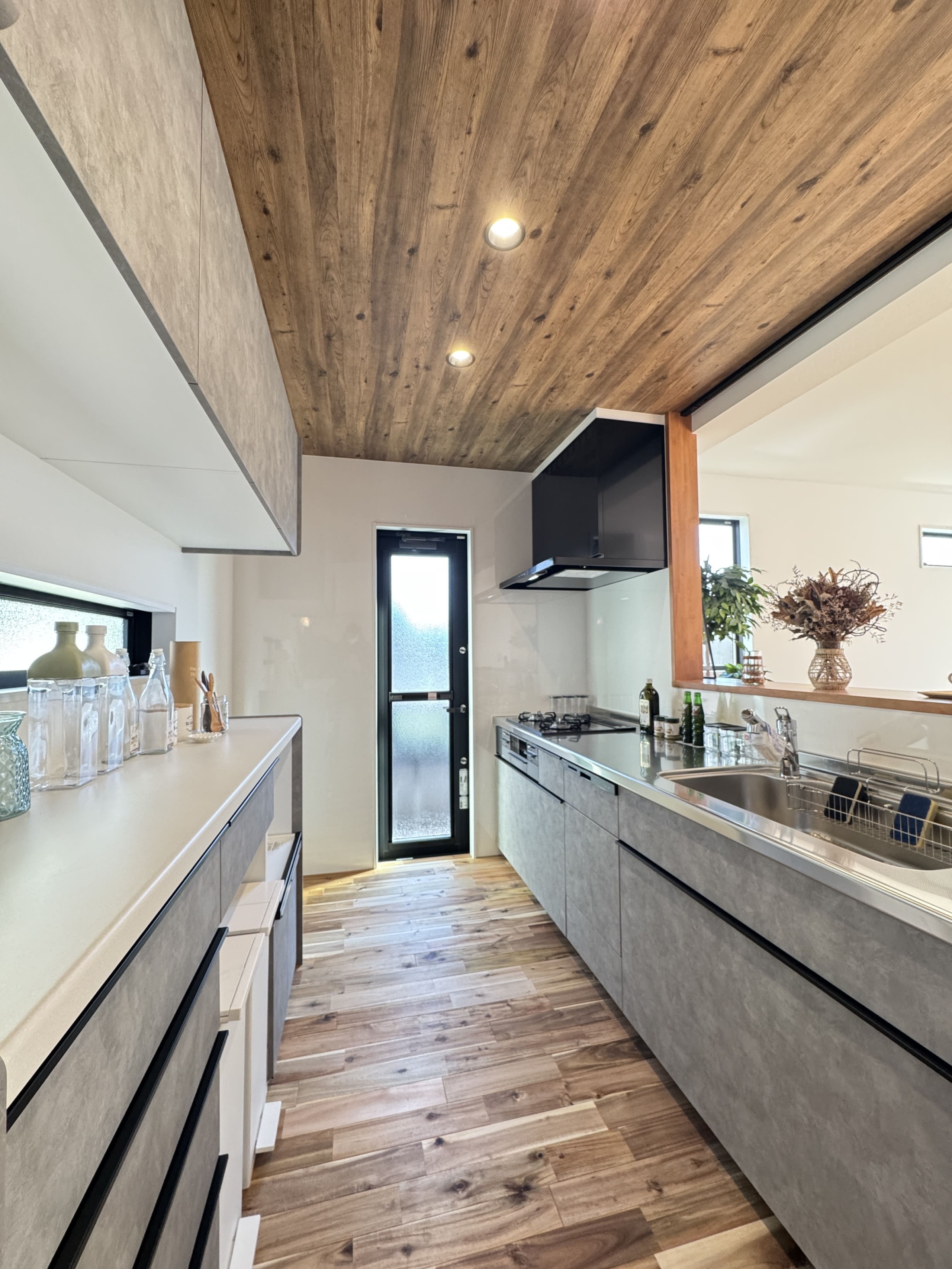 マットなグレーのキッチンに、
