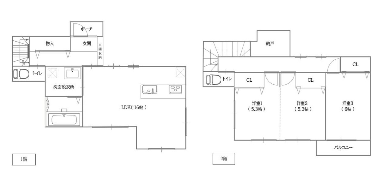 | 土地面積 | 101㎡(約30坪) | 間取り | ・1階16LDK・2階6洋、5.3洋、5.3洋 |
