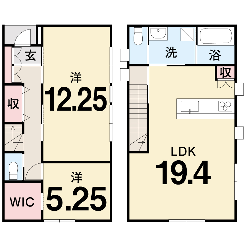 - 1F 洋12.25・洋5.25/2F LDK19.4