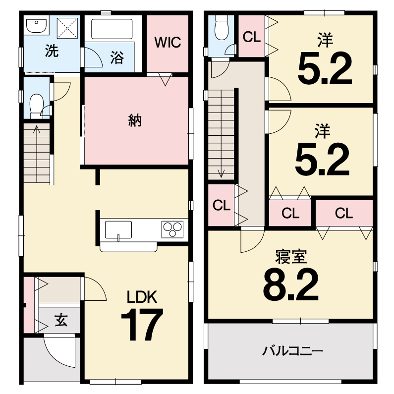 - 1F LDK17 納戸5.2 2F 洋5.2・5.2・8.2