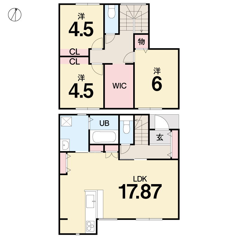 - 1F LDK17.87/2F 洋4.5・洋4.5・洋6