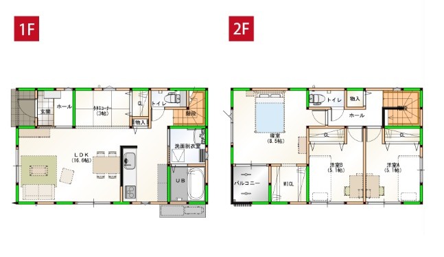 | 土地面積 | 102.95㎡(約31坪) | 間取り | 1F LDK16.6 2F 洋5.1・5.1・8.5 |