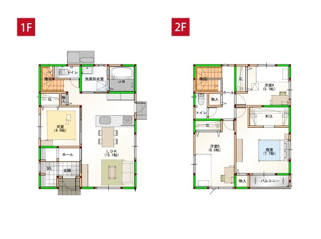 - 1F LDK15.1 洋4.5 2F 洋6.6・7.7・5.1
