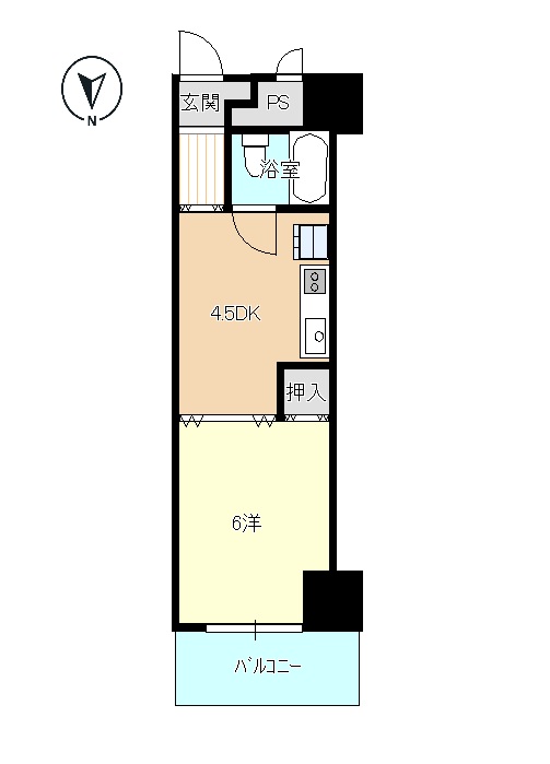 一人暮らしにちょうど良い、使い勝手の良い1K間取り。