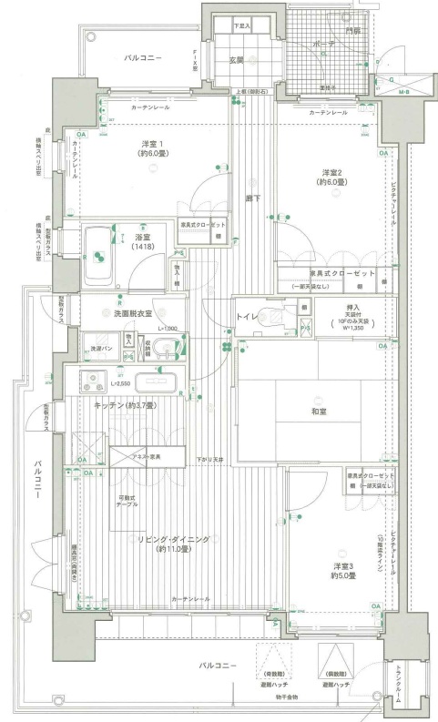 - バルコニー面積